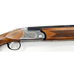 • Ausstattung: Hartverchromte Läufe von innen und außen. Stahlbasküle mit gelaserter Arabeskengravur. Messing-Korn.