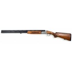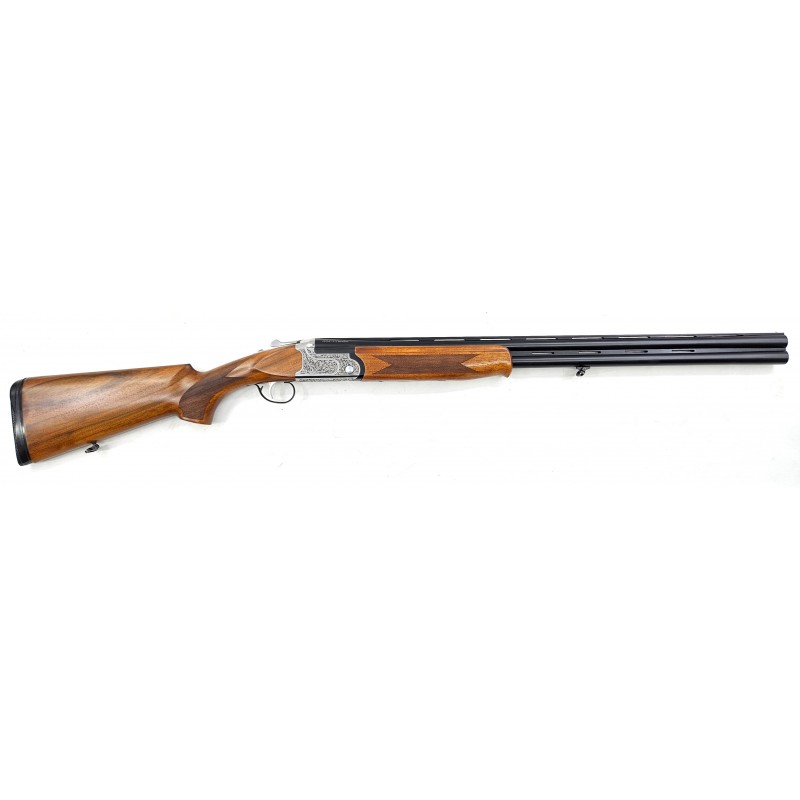• Ausstattung: Hartverchromte Läufe von innen und außen. Stahlbasküle mit gelaserter Arabeskengravur. Messing-Korn.