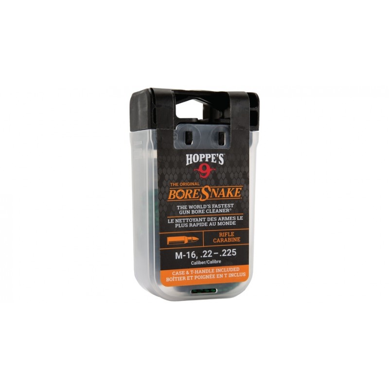 Hoppe's BoreSnake ist der schnellste Laufreiniger der Welt. Einmal durchziehen löst große Partikel, bürstet die Rückstande mit einer Bronze-Bürste aus und wischt dann alles makellos mit einem Reinigungsbereich sauber, der 160 mal größer ist als ein Standard-Patch.