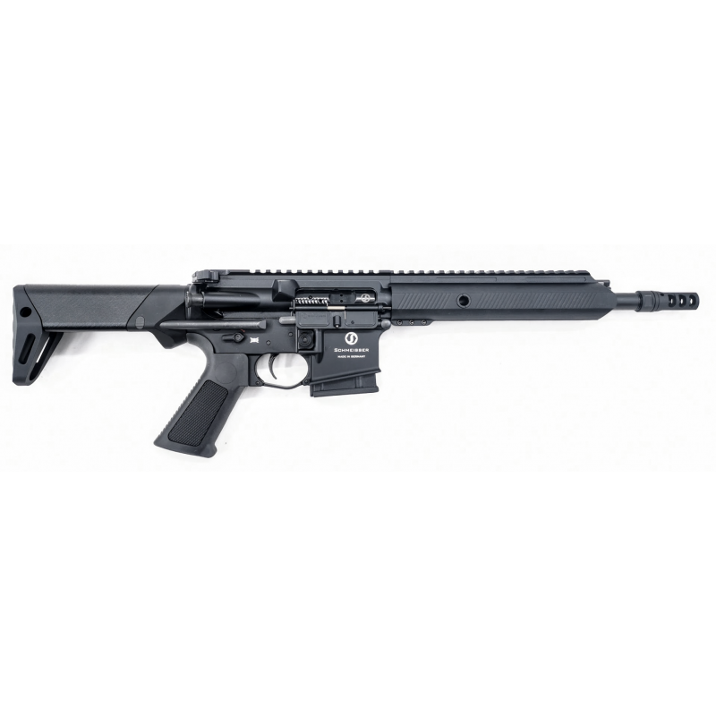 Die Schmeisser AR15 ist eine besonders führige SL-Büchse für die Anwendungsbereiche Jagd und Sport mit freischwingendem Lauf. Diese Waffe hat einen No Flash Mündungsfeuerdämpfer, einen schlanken M-Lok Vorderschaft und einen verstellbaren Stahlgasblock. Der Two-Stage Trigger garantiert eine klar definierte trockene Schußauslösung. Sowohl Sicherung, Magazinauslöser, Durchladehebel als auch Verschlussfang sind beidseitig ausgelegt. Die Solid-Verstärkung am Lower erhöht die Stabilitität um ein Vielfaches gegenüber herkömmlichen AR15. Auslieferung erfolgt serienmäßig mit 10 Schuss Magazin.