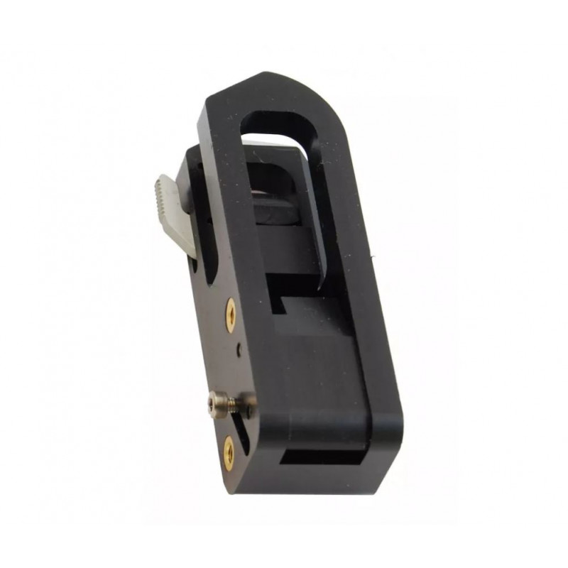 5. To remove the slide lock from the block, unscrew the M3 screw visible from the back of the block – and then slide the slide lock upwards and out through the window in the block – passed the safety lever, which must be in the unlocked position.