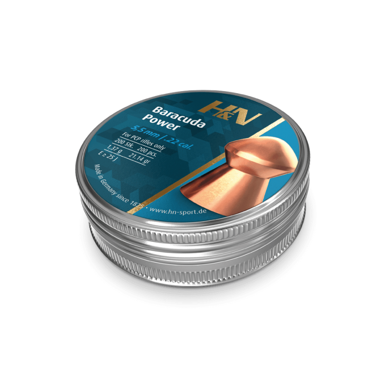 Mit einem Gewicht von 1,37 g ist die Baracuda Power 5,5 mm eine schwere, außergewöhnlich präzise Kugel für weite Distanzen. Keine Verbleiung, verbesserte Führung im Lauf, kein Bleikontakt durch spezielle Kupferbeschichtung (20% härter als vergleichbare Bleikugel). Erstklassiges aerodynamisches Design für hohe Durchschlagskraft und Eindringtiefe. Geringe Deformation der Kugel. Enge Schussgruppen. Glatt.