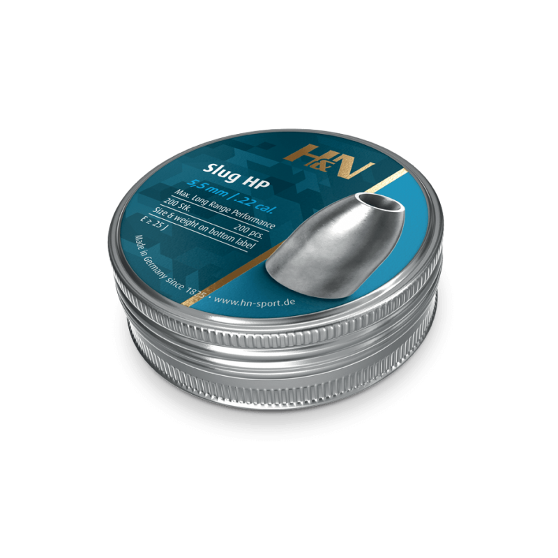 Der H&N Slug HP ist eine Luftgewehrkugel, welche sich aufgrund ihrer Geschossform deutlich von den üblichen Luftgewehrkugeln unter-scheidet. Sie wurde für leistungsstarke Gewehre entwickelt, die solche Projektile präzise auf Ziele in einer Entfernung von 50, 100 oder sogar 200 Metern verschießen können. Ein extrem günstiger ballistischer Koeffizient (BC) sorgt für eine flache Flugbahn und einen geringen Verlust von kinetischer Energie. Die Mündungsenergie des Gewehrs sollte mindestens 25 Joule betragen, für optimale Ergebnisse empfehlen wir jedoch 40 bis 60 Joule.