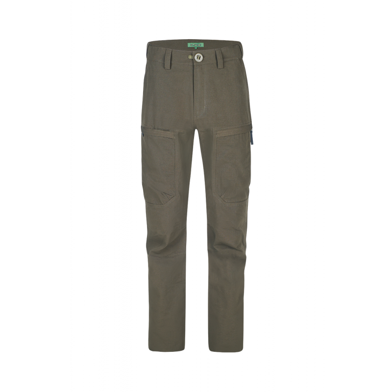 Die Hose ist aus einem widerstandsfähigem und zugleich weichem Polyester/Baumwoll - Mix gefertigt. Die spezielle Bundverarbeitung mit Stretchfunktion bietet ein angenehmes Tragegefühl. Die Kniepartie ist für mehr Bein- und Bewegungsfreiheit vorgeformt. Für genügend Stauraum sorgen die viele Taschen. Die Hose hat zwei Schubtaschen, zwei Seitentaschen mit Reißverschluss und zwei Gesäßtaschen. In rechter Vorderhose ist sie mit einer Messertasche ausgestattet.
