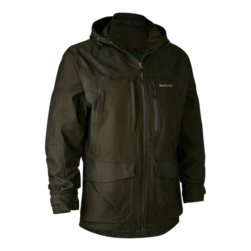 Die Deerhunter Chasse Jacke wurde für die Jagd entworfen. Durch ihre zahlreichen praktischen Funktionen eignet sie sich für die Jagdabenteuer und andere Outdoor-Aktivitäten. Mit ihrem melierten Farbton macht die Chasse Jacke im Revier aber auch im Stadtbild gute Figur. Die leicht erreichbaren Taschen bieten den notwendigen Stauraum. Die Reißverschlüsse an Brust- und Einschubtaschen sorgen für zusätzliche Sicherheit. In den zwei großen Vordertaschen mit Kellerfalte und Patte ist Platz für größere Gegenstände. Die abnehmbare Kapuze, der Kordelzug im unteren Saum, eine Innentasche mit Reißverschluss, vorgeformte Ellbogen und verstellbare Klettbündchen sind nur einige der vielen Funktionen, die für eine individuell optimierte Passform sorgen. Abgerundet wird diese Performance-Jacke durch die Wildtasche hinten mit zwei seitlichen Reißverschlüssen und dem Zwei-Wege-Reißverschluss in der Mitte, der zusätzliche Bewegungsfreiheit bietet.