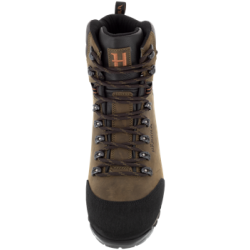 Die Forest Hunter Mid GTX Stiefel wiegen nur rund 740 g je Stiefel – und das obwohl es sich um Lederstiefel handelt. Die Stiefel haben einen mittelhohen Schaft (7”/18 cm) und eine etwas größere Leistenbreite. Bei diesem Modell haben die Zehen besonders viel Platz. Dies sorgt nicht nur für einen hohen Komfort, sondern erweist sich auch an kalten Tagen als praktisch, da Sie Ihre Zehen selbst mit dicken, isolierenden Socken besser bewegen können. Die Forest Hunter Mid GTX Stiefel sind mit einer wasserdichten GORE-TEX MS Advanced recycled-Membran ausgestattet. Sämtliche Stiefelmembranen werden während des Produktionsprozesses in einem Wasserbad getestet, um sicherzugehen, dass sie auch wirklich wasserdicht sind. Darüber hinaus führen wir einen 30-minütigen Zentrifugen-Stichprobentest bei 5 % der gesamten Stiefelproduktion durch, um uns zusätzlich zu vergewissern, dass die Membran eine höchstmögliche Qualität aufweist. Das Obermaterial der Stiefel besteht aus Nubukleder, und die halbsteifen Vibram®-Qualitätssohlen sorgen für eine hohe Bodenhaftung. Darüber hinaus besitzen die Stiefel eine trittdämpfende Zwischensohle für einen optimalen Laufkomfort selbst bei langen Strecken in extrem unwegsamem Gelände. Obwohl die Stiefel sehr robust sind, besitzen sie im vorderen Bereich und an der Ferse Flexpunkte, die für höchsten Laufkomfort sorgen. Die Stiefel sind am stark beanspruchten Zehen- und Fersenbereich mit besonders strapazierfähigem Material verstärkt.