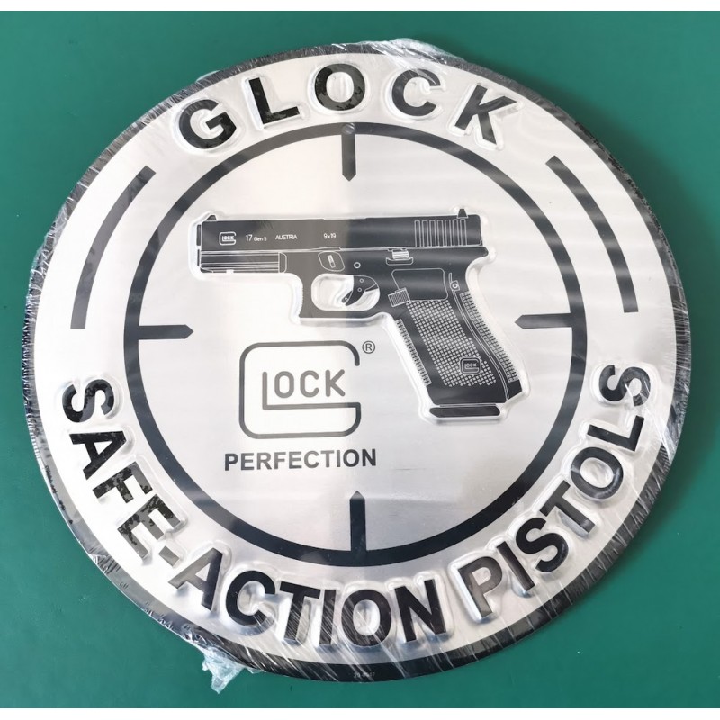 Glock „Safe Action“ Aluminiumschild ist eine tolle Ergänzung für jeden Glock-Fan. Mit schwarzem Schriftzug auf gebürstetem Aluminium für Haltbarkeit und hohe Qualität. Jedes Schild hat einen Durchmesser von 28 cm und hat ein vorgebohrtes Befestigungsloch.