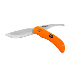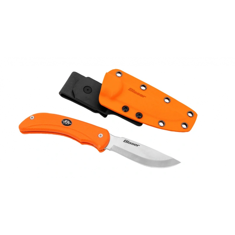 Das Blaser Ultimate Messer wurde mit viel Erfahrung spieziell für den jagdlichen Einsatz entworfen. Die rotierende Klinge aus 12C27-Sandvik-Stahl bietet zusätzlich zur bewährten Drop-Point-Klinge eine Aufbruchklinge mit ausgeballter Spitze. Diese sorgt für ein einfaches und sauberes Aufbrechen des Wildes, ohne dabei den Pansen oder andere Organe zu verletzen. Die Klinge lässt sich durch einen Druckknopf am Griff mühelos bewegen und rastet automatisch in der richtigen Position ein. Der ergonomische Griff aus rutschfestem Kunststoff sorgt dafür, dass das Messer sicher in der Hand liegt.