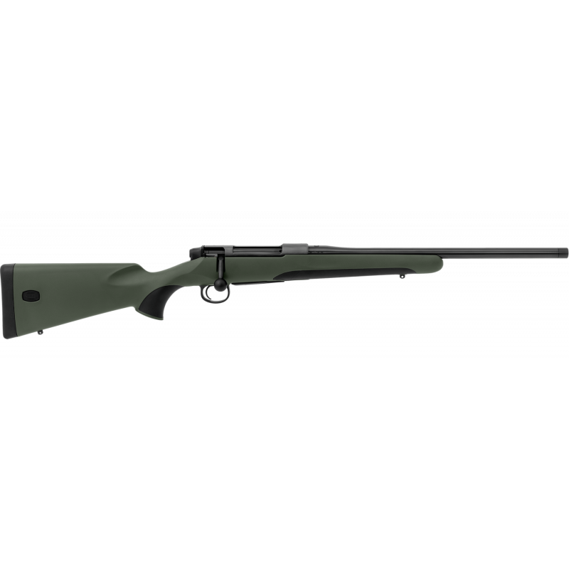 Grüner Polymerschaft , Lauflänge 51 cm, entnehmbares Kunststoffmagazin, brünierter Lauf, Mündungsgewinde M17x1, ohne Visierung, verfügbare Kaliber: .308 Win., .30-06 Spring., 8x57 IS