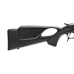 The break action is available in black or stainless finish. The hammer spur is reversible for left handers. The rifle can be disassembled without any additional tool, which makes it easy to carry in any bag and ideal to store away in a reduced space.