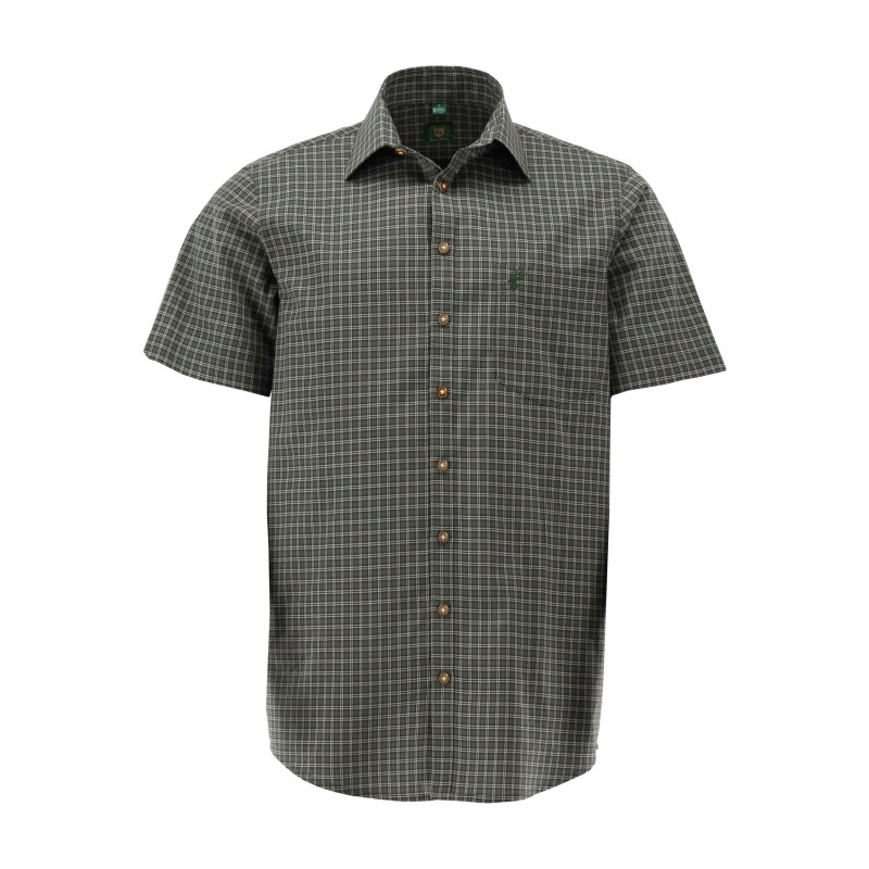 JAGDHEMD KURZARM DUNKEL GRÜN MIT BRUSTTASCHE