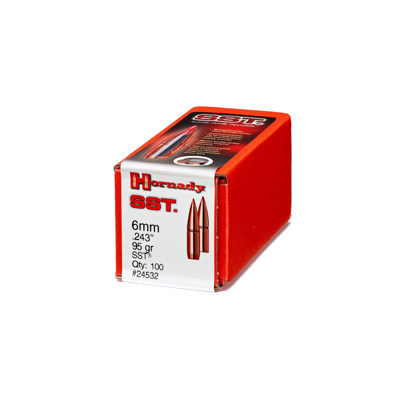 Incorporating the pioneering Hornady secant ogive design, the tapered point, increased bearing surface and more aerodynamic profile, combined with a boattail base, makes the SST® more efficient with less drag and greater stability.