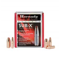 Sub‑X® (Subsonic — eXpanding) bullets deliver big results without a big bang! Designed to provide deep penetration below the speed of sound, Sub‑X® features a lead core. Long grooves in its gilding metal jacket combine with its flat profile and the patented Flex Tip® insert within the bullet’s hollowpoint cavity to help it expand reliably at low velocities. Cannelures provide positive case crimp, making Sub‑X® ideal for semiautomatic firearms.