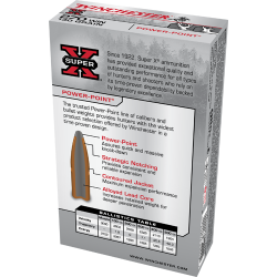 • Rapid Controlled Expansion Super-X Power-Point ammunition offers a unique exposed soft nose jacketed bullet design that delivers maximum energy on target. Strategically placed notches around the jacket mouth improve upset performance and ensure uniform expansion for massive energy release.
