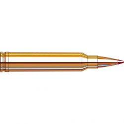 With high velocity, 0-400 yard impact, the bullet continually expands throughout its penetration path. The thick shank of the jacket and high InterLock ring keep the core and jacket together providing 50-60% weight retention.