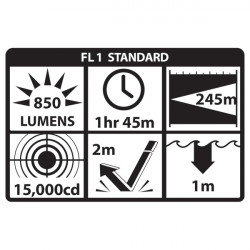 The TWM-850XLS Xtreme Lumens™ Tactical Weapon-Mounted Light uses an LED rated at 850 lumens working in conjunction with a high-efficiency deep parabolic reflector to create a usable beam of light rated at 245 meters.