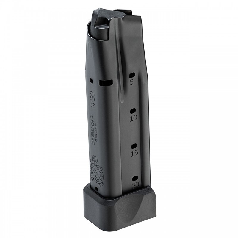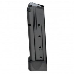 Never come up short on capacity with the 20-round 1911 DS extended magazine. A polymer base pad is attached to the 410 stainless steel body for ultimate durability. Intuitive finger grooves aid in magazine manipulation and extraction.