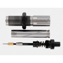 Das Kalibrieren des Hülsenhalses von innen erfolgt beim Herausfahren aus der Matrize. Bei entsprechender Wahl des HK-Ringes kann evtl. auf den Innenaufweiter verzichtet werden.