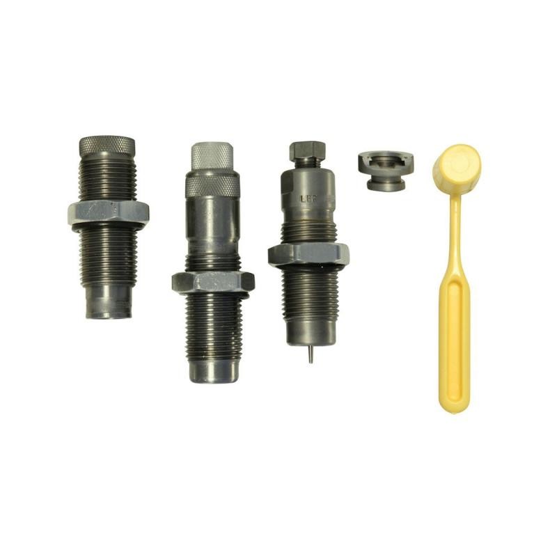 LEE Stahl Matrizensätze für Faustfeuerwaffenkaliber Die 3-teiligen Matrizensätze bestehen aus einer Voll-Kalibriermatrize aus Stahl. Die Hülsen müssen hierbei grundsätzlich gefettet werden. Die Aufweitematrize bildet in Mehrstationenpressen gleichzeitig die Pulverfüllmatrize. Die Geschoßsetzmatrize ist mit einem universellen Setzstempel für alle gängigen Geschosse ausgestattet. Die Matrizen passen in alle gängigen Pressen mit 7/8x14 Standardgewinde. Die Matrizen werden mit Aluminium - Gewinderingen und passendem Hülsenhalter in einer stabilen Kunststoffbox geliefert.