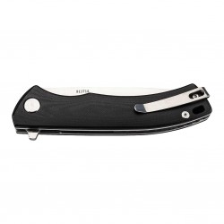 Aus der TEC Serie von Puma kommt dieses toll verarbeitete Einhandmesser. Die satinierte Klinge aus rostfreiem AISI 440 Stahl kann dank der kugelgelagerten Klingenachse über einen Flipper elegant geöffnet werden. Ein Liner Lock Mechanismus arretiert die Klinge zuverlässig. Edelstahlplatinen und passgenaue Heftschalen aus schwarzem G10 geben dem ergonomischen Griff eine angenehme Haptik. Eine Fangriemenöse und ein Tip Up Taschenclip vervollständigen die Ausstattung.