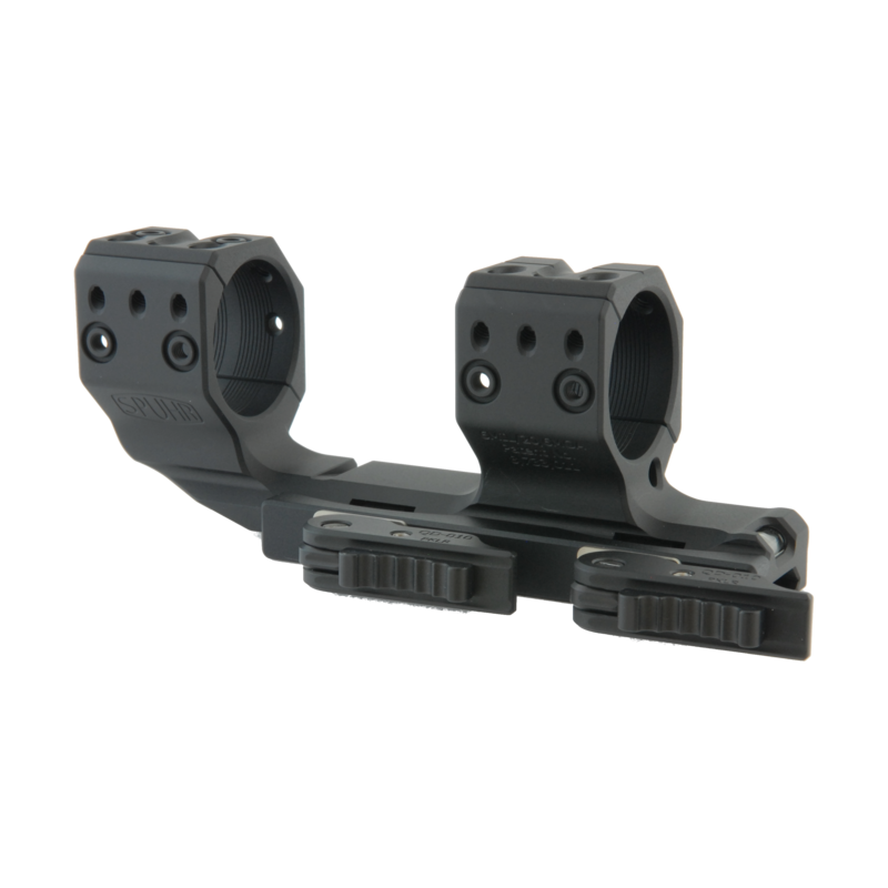 Quick detachable cantilever mount featuring side clamp and dual levers on the left side of the mount, with tensioning screws on opposite side of the mount body. Absolute co-witness most clip-on NV units on AR platforms. Allows the scope to be mounted 40 mm/1.57” farther forward than with a non-cantilever mount.