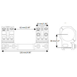 The IDEAL SCOPE MOUNT SYSTEM series of mounts feature seven set of interfaces to attach any of more than 40 different accessories, and has a bubble level integrated in the rear plane of the mount body to prevent canting of the rifle. The rings are diagonally cut for increased visibility of the elevation and windage turrets (US Patent 8,733,011). The mounts are machined from billet 7075 T651 aluminum and all aluminum parts are hardcoat anodized. The Torx 20 ring and clamping screws are zinc-nickel coated for corrosion resistance. The screws come pre-waxed from the factory to ensure proper torque values. The mount is shipped with a manual and a “wedge” leveling key.