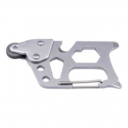 Das praktische Survivaltool mit Feuerstarter von Herbertz im Schlüsselbundformat überzeugt mit 6 unterschiedlichen Funktionen. Der Feuerstarter erzeugt über ein Reibrad und einen Feuerstein Funken, wie bei einem handelsüblichen Benzinfeuerzeug. Weitere Funktionen sind: Seil-/Gurtschneider, Schlitz- und Phillips-Schraubendreher, Sechskant-Schraubendreher von 4 bis 8mm sowie ein Karabinerhaken.