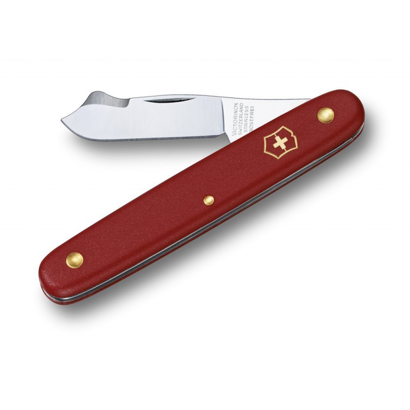 Das Okkuliermesser verfügt über einen Rindenlöser und einer ca. 5 cm langen, rostfreien Klinge mit roten Nylon-Griffschalen.