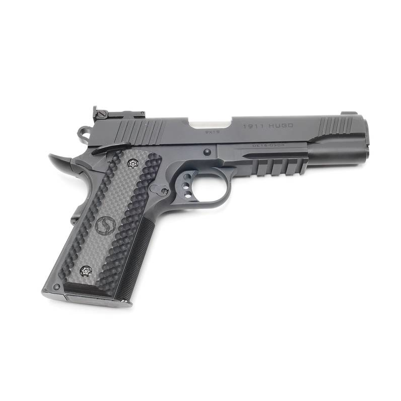 Die Schmeisser 1911 Hugo in .45 ACP oder 9x19 ist eine klassische 1911er Pistole die bereits werksmäßig mit allen Aussttattungsmerkmalen versehen ist, die man sich an einer 1911er wünschen kann: Jedes Modell kann wahlweise mit Mikrometer- oder starrer Visierung geliefert werden.