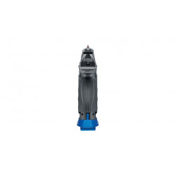 Darf’s etwas mehr sein? 1,2 Kilogramm extrem souveränes Gewicht bringt die Steel Frame Champion auf die Waage. Sie kommt out of the box mit einstellbarem Abzug, Magazintrichter in Blau und dazu passenden Magazinen mit Verlängerung. Drei 15 +2 Schuss Magazine liegen bei.