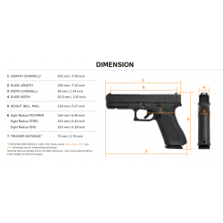 Neue Features der Glock 17 Gen5 sind der beidseitig bedienbare Verschlussfanghebel, der modifizierte und für eine bessere Präzision sorgende Lauf (Glock Marksman Barrel, GMB) und die verbesserte Visierung, die einen größeren Lichtspalt zwischen Kimme und Korn fallen lässt.
