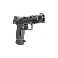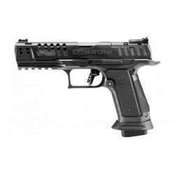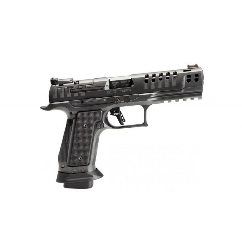 Walthers Steel-Frame-Serie nahm die Schießsportszene im Sturm. Wobei dieses Beispiel deutscher Ingenieurskunst selbst unter härtesten Wettkampfbedingungen noch Reserven zeigt. Mancher Schütze hatte schon das Gefühl, seine Walther Steel Frame sei unterfordert, verlange ständig nach mehr. Hier nun also die IPSC-Variante in Schwarz. Walther legte noch eins drauf und spendierte der Sportlerin einen Extended Magazine Release. Der vergrößerte Magazinauslöser steht deutlich über und ist besonders gut erreichbar. Satter Widerstand bei Betätigung sorgt für zuverlässigen Halt des Magazins. Beispielsweise dann, wenn die Stage sitzend, mit abgelegter Waffe beginnt.