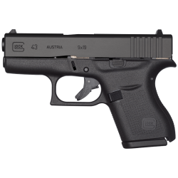 The already legendary G43 is a single stack, 9 mm Luger caliber pistol. It is ultra-concealable, accurate and a fantastic tool for all shooters regardless of one’s hand size. The grip has a built-in beaver tail design which allows the shooter to acquire a high and tight grip. The aggressive texture of the grip surface allows for comfortable and reliable operation of the pistol. The large magazine catch makes quick work of removing the six round magazine. Engineered based on the same superlative standards that GLOCK is famous for, the tiny G43 tolerates the same torture tests all its bigger brothers in the GLOCK pistol family withstand.