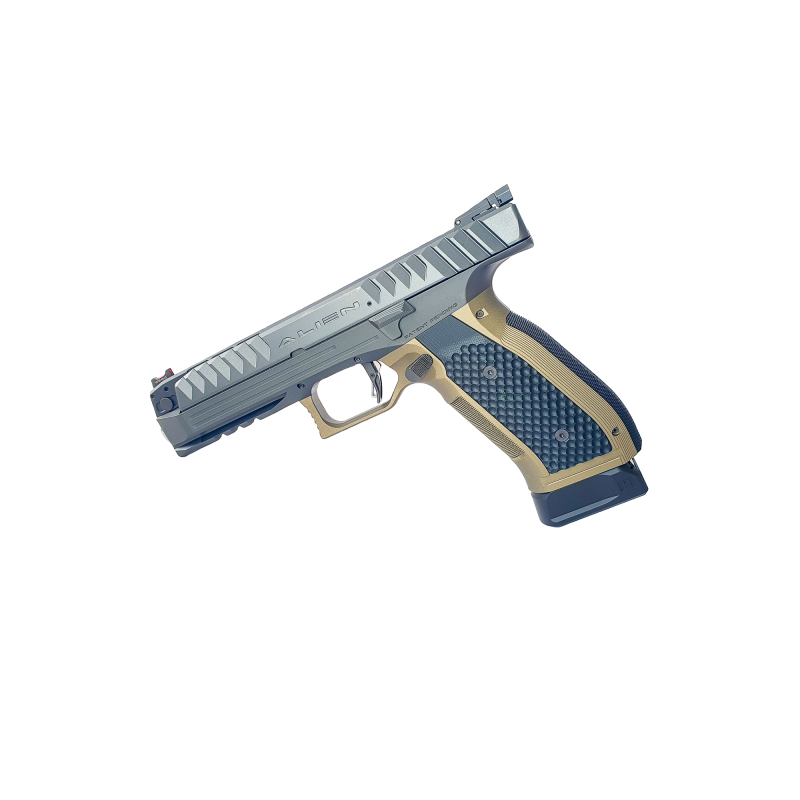 Die LAUGO ALIEN PERFORMANCE ist perfekt für die IPSC Production Division geeignet oder zum präzisen Scheiben schießen. Sie kommt in einer weichen Tragetasche mit 2 Magazinen, ohne Magazintrichter