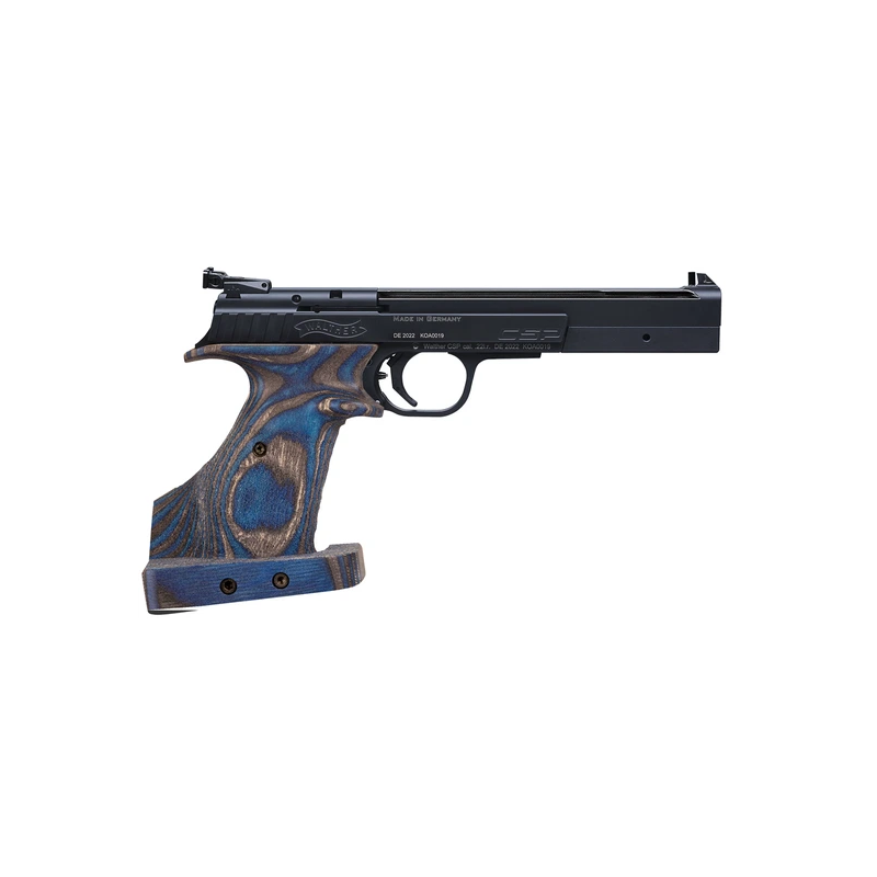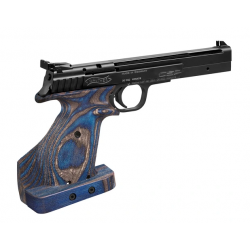 • Steel Frame-Griffstück • tenifer®-behandelt • Anatomischer Wettkampfgriff aus engelsblauem Schichtholz (Standard) oder kaukasischem Nussbaum (optional) • Verstellbarer Matchtrigger • Klickverstellbare Kimme • Drehbares Korn • Frontgewicht 100 g • Alternative Kunststoffabdeckung zur Verwendung anstelle des Frontgewichts • 11 mm Zubehörschiene sowie Löcher zur Befestigung einer Picatinny-Schiene und anderer Halterungen • 10 Schuss Magazin (2 Magazine im Lieferumfang enthalten) • Manuelle Sicherung