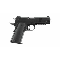 In der Zielaufnahme profitieren Schützen von einer übersichtlichen Dreipunktvisierung mit Kontrastpunkten und einer driftbaren Kimme, die durch ihre flache Bauweise ohne senkrecht herausragendes Kimmenblatt das sichere Ziehen der Forge unterstützt. Die aufgeschraubten Santoprene-Griffschalen sind rutschfest und entsprechen dem 1911-Standard. Zur Personalisierung des Schießerlebnisses können sie mit den unzähligen Optionen der 1911-Griffschalen vom Zubehörmarkt ersetzt werden. Ebenso erlaubt die Picatinny-Schiene die Aufnahme verschiedenen Zubehörs zur weiteren Anpassung an die individuellen persönlichen Bedürfnisse.