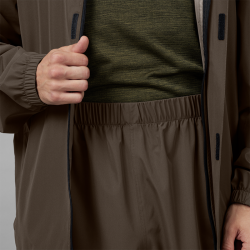 Das Taxus Regenset ist ein dünnes und sehr leichtes Regenset aus einer Jacke und einer Hose, das sich in der linken Jackentasche zusammenfalten lässt und somit mühelos überallhin mitgenommen werden kann. Das Regenset hat eine wind- und wasserdichte SEETEX®-Membran, sodass sich im Gegensatz zu herkömmlichen Regensets im Inneren kein Kondenswasser bildet, während Sie sich bewegen. Die Kapuze der Jacke ist verstellbar, sodass sie bei Regen und Wind eng am Kopf anliegt. Wenn die Kapuze nicht benötigt wird, lässt sie sich im Kragen verstauen. Auf diese Weise bildet sich gleichzeitig eine zusätzliche Isolierung im Halsbereich. Darüber hinaus besitzt die Jacke eine Windschutzleiste und zwei geräumige Fronttaschen mit Klettverschluss sowie elastische Ärmelabschlüsse, damit kein Regen oder Wind in die Ärmel eindringen kann. Die Hose hat einen elastischen Bund und eine Öffnung mit Klettverschluss an jeder Seite, damit Sie mühelos an die Taschen der darunterliegenden Hose gelangen.