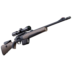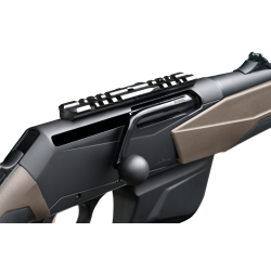 Diese schöne Büchse mit Geradzug ist mit einem Mündungsgewinde (M14x1) und einer verstellbaren Schaftbacke ausgestattet. Sie verfügt ebenfalls über eine Mündungsbremse (T1), die den Rückstoß und das Hochschlagen der Waffe bei aufeinanderfolgenden Schussabgaben erheblich mindert.