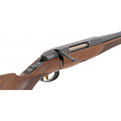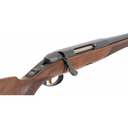 Die bayrische Backe mit Doppelfalz und die Schuppenfischhaut verleihen dem Schaft eine zeitlose, unaufdringliche Eleganz. Der im Kalthämmerverfahren hergestellte und durch O.B.P. (optimized barrel profile) optimierte Lauf garantiert eine konstant hervorragende Schussleistung und fügt sich harmonisch in das Gesamtbild der Waffe ein.