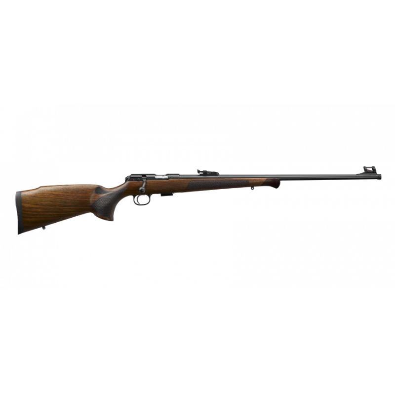 A model that will impress all lovers of hunting rifles of a classic shape. The stock with a cheekpiece and a tip with decorative material is made from premium walnut. The 630 mm thin-walled barrel has a 1/2x20 muzzle thread for the attachment of a silencer, a tangent rear sight and a fibre optic front sight.