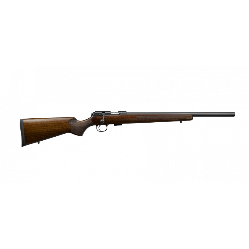 Das Modell 457 Varmint ist mit einem lackiertem Walnuss-Schaft ohne Backe ausgestattet. Der dickwandige, kaltgehämmerte Match-Grade-Lauf mit Mündungsgewinde steht für eine enorme Präzision.