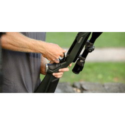 Abnehmbarer Abzugsbügel im Hinterschaft verstaubar. Kammersperre für erhöhte Sicherheit. Top Flex-Abzug, trocken stehender Flintenabzug mit Rückstecher. Kammergriff- und Verschlusskopfwechsel ohne Werkzeug möglich.