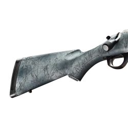 Das unverwechselbare Bergara-Tarnmuster, handbemalt in dunklen Grautönen, für den klassischen American Style Hunter Synthetic-Schaft.