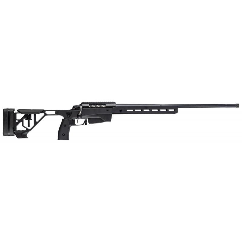 The rifle's medium contour barrel is designed to enhance accuracy and reduce vibration. Its free-floating, cold hammer-forged construction minimizes vibration and withstands heat, ensuring precise shooting. The fluted barrel is lightweight, making the rifle easy to carry during long hunts or competitions. Caliber options range from .223 Rem to .300 Win Mag. The barrel also features a 5/8”-24 muzzle thread.