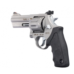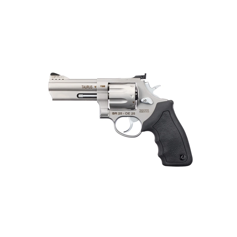 Der Revolver Taurus 608 4" ist außergewöhnlich robust und zuverlässig. Der geschmiedete Edelstahlrahmen im bewährten matten Stainless Steel Design hält auch den stärksten Beanspruchungen stand. Mit der beeindruckenden Trommelkapazität von 8 Schuss .357 Magnum bietet er eine Feuerkraft die nur wenige Revolver auf dem Markt bieten können. Der werksseitig getunte Lauf mit Kompensator reduziert das Hochsschlagen der Waffe spürbar. In Verbindung mit dem Gummigriff wird der Komfort beim Schuss maximiert und die Handlage bzw. das Handling der Waffe optimiert.