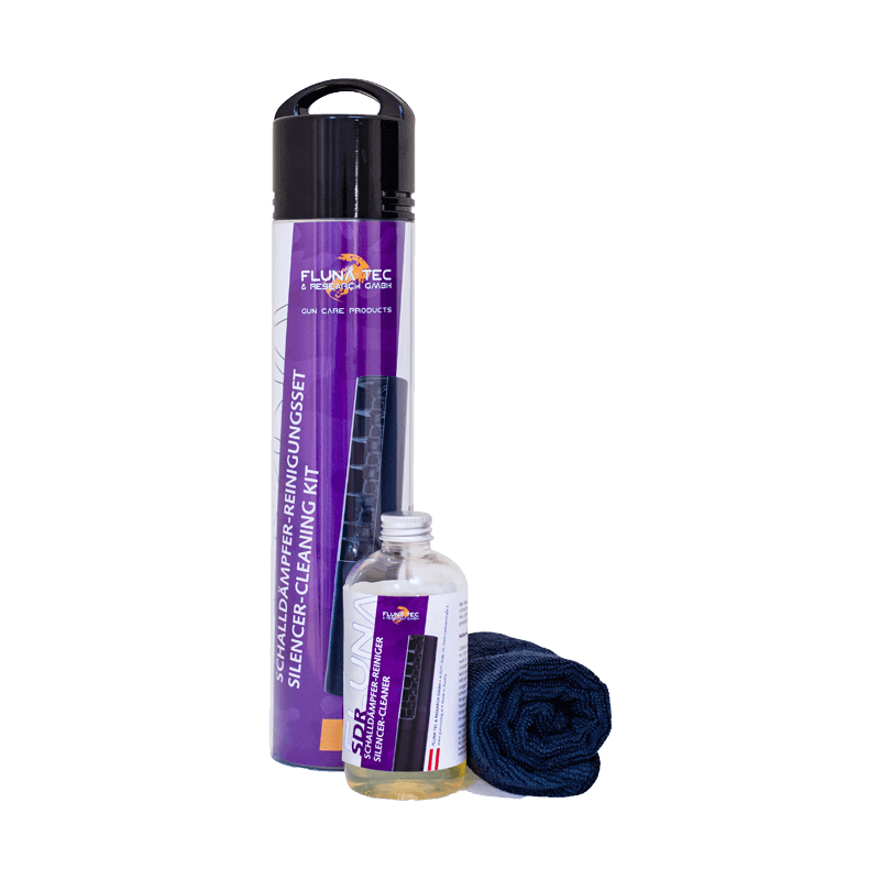 • Fluna SDR Konzentrat 250ml (GCSDR0250 ) • Mikrofasertuch 40/40cm • Hülle zur Reinigung des Schalldämpfers