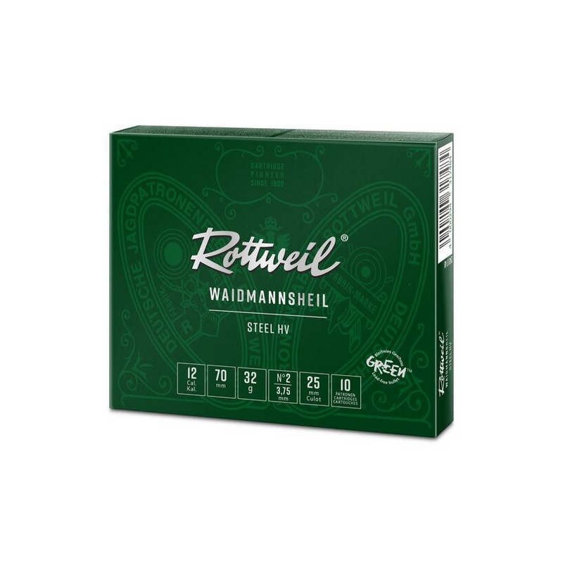 Die Rottweil Waidmannsheil Steel HV (HV = high velocity = hohe Geschwindigkeit) Schrotpatronen zeichnen sich durch herausragende Leistungen für Jäger aus, da sie Präzision und Zuverlässigkeit vereinen. Die Patrone mit bleifreiem C.I.P.-gerechtem Weicheisenschrot bietet sich besonders für umweltsensible Gelände an.
