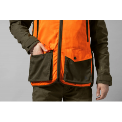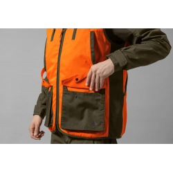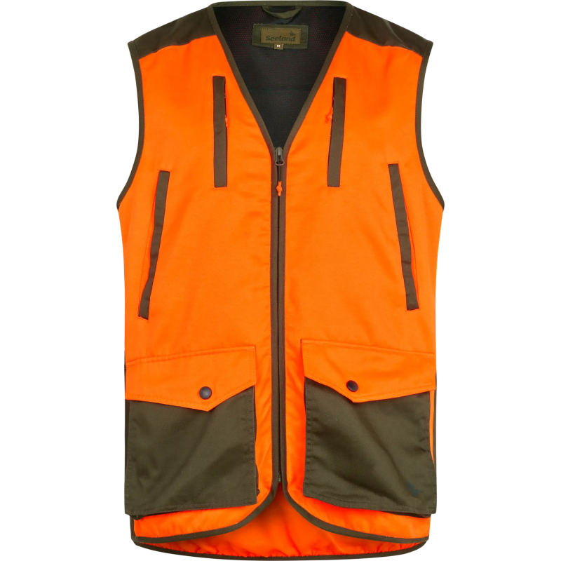 Die Travo Weste wurde für die Treibjagd und Hundeführer entwickelt und vereint Sichtbarkeit mit praktischen Funktionen. Die Weste besitzt zwei große Fronttaschen, Quickload Straps, eine XL-Hasentasche und zwei Brusttaschen mit Reißverschluss, die als Funkgerättaschen genutzt werden können, und kann über Ihrer Jagdjacke oder als Außenschicht getragen werden. Auf diese Weise sind Sie in jeder Jagdsituation sichtbar und gut vorbereitet.