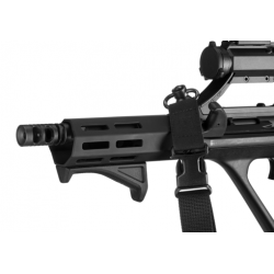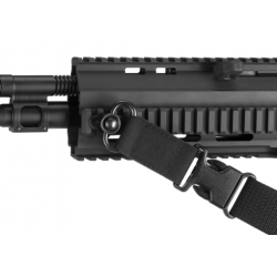 Dieser vielseitige und modulare Zweipunkte Riemen wurde speziell für die Verwendung mit Sturmgewehren und Maschinenpistolen konzipiert, die Länge kann mittels eines Schnellverschlusses aus Acetal innert kürzester Zeit verstellt werden. Dies ermöglicht einen raschen Wechsel von der Transporttragweise nahe am Körper zu verschiedenen Gerfechtstragweisen mit voller Bewegungsfreiheit. Mittels SR Schnalle ist eine sofortige Trennung von der Waffe möglich (öffnet nicht unter Belastung). Die Riemenenden sind mit QD Swivels ausgestattet, das vordere Riemenende kann individuell gegen andere Enden getauscht werden, diese sind optional erhältlich.