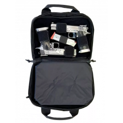 The 2G model is designed to hold two full-size pistols (or one Open pistol) and up to 10 magazines. The design of the bag allows for complete user customization, enabling to best configure the product to your needs and transport requirements.